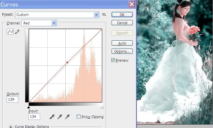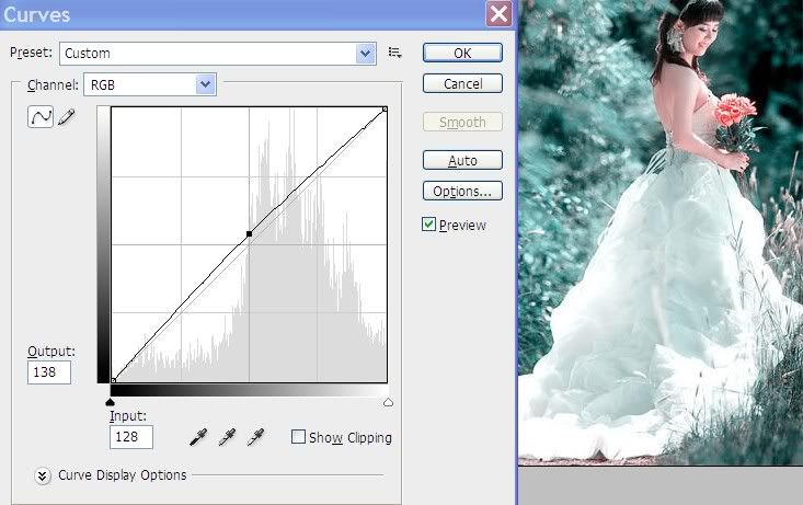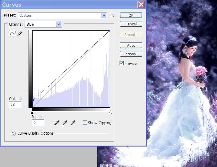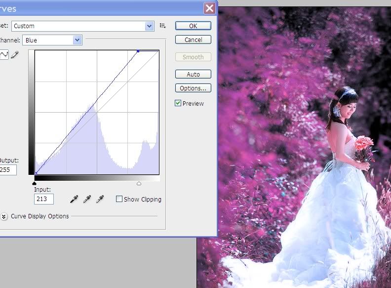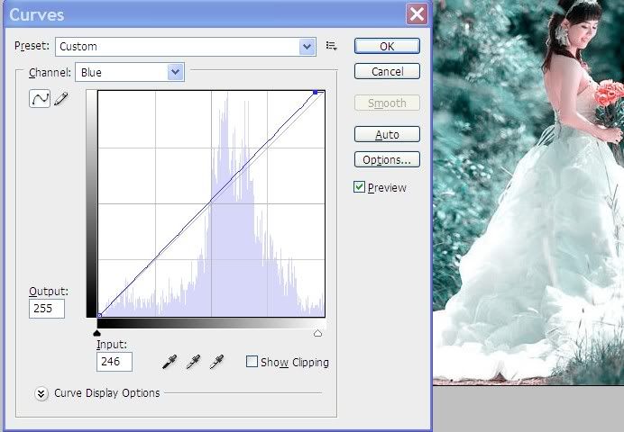 Bước 2: Tạo lớp Curves (Phím tắt Ctrl+M). chỉnh màu Blue như hình: