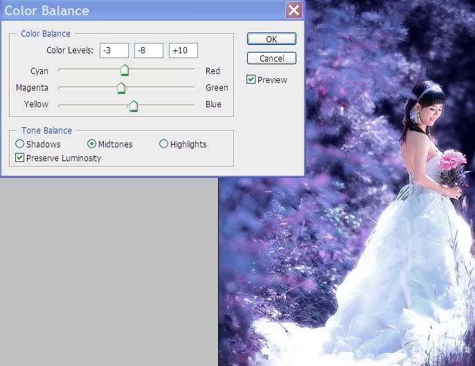 Bước 10: Tạp 1 lớp Color Balance, chỉnh như hình